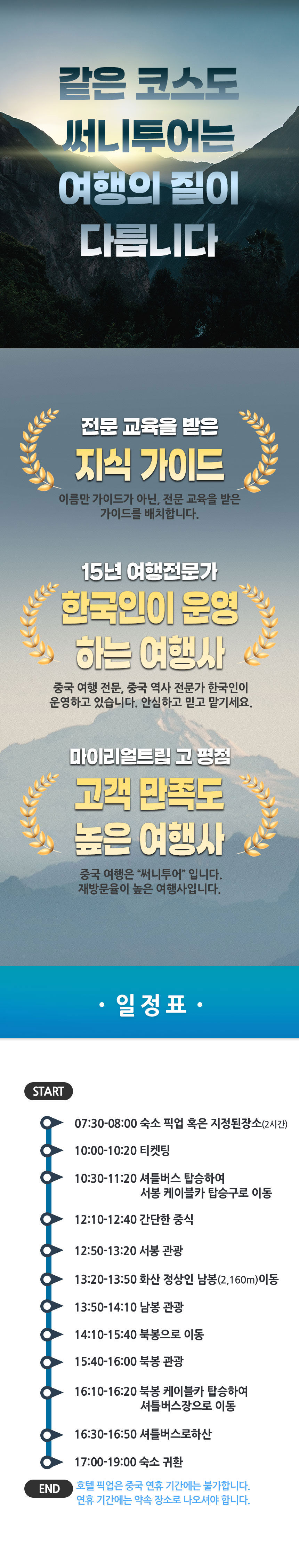[서안] 화산투어 평점 5 · 리뷰 1건 🎈 이 프로그램은 최소인원 4인이상 출발 상품으로 모객부족시 출발 3일전까지 추가신청을 기다려 확정여부를 말씀드립니다. 포함 * 한국어 가이드 * 입장료 / 왕복 케이블카 * 전용차량 * 가이드/기사 팁 * 점심식사(간편식) 불포함 * 개인경비 * 여행자 보험 마이리얼트립에서 예약하기 시안 목록 도시 목록