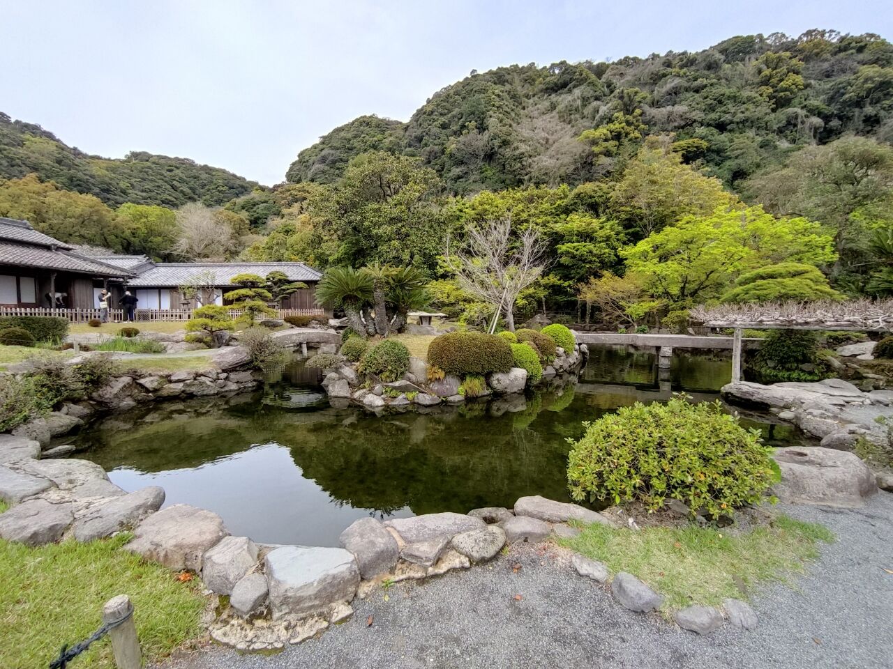 1658년에 지어진 일본식 정원으로 옛 저택과 활화산 사쿠라지마의 전경이 어우러져 멋진 장관을 보실 수 있습니다.