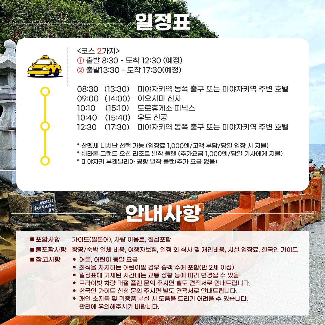✔️아오시마 신사와 우도 신궁을 도는 반나절 코스입니다.