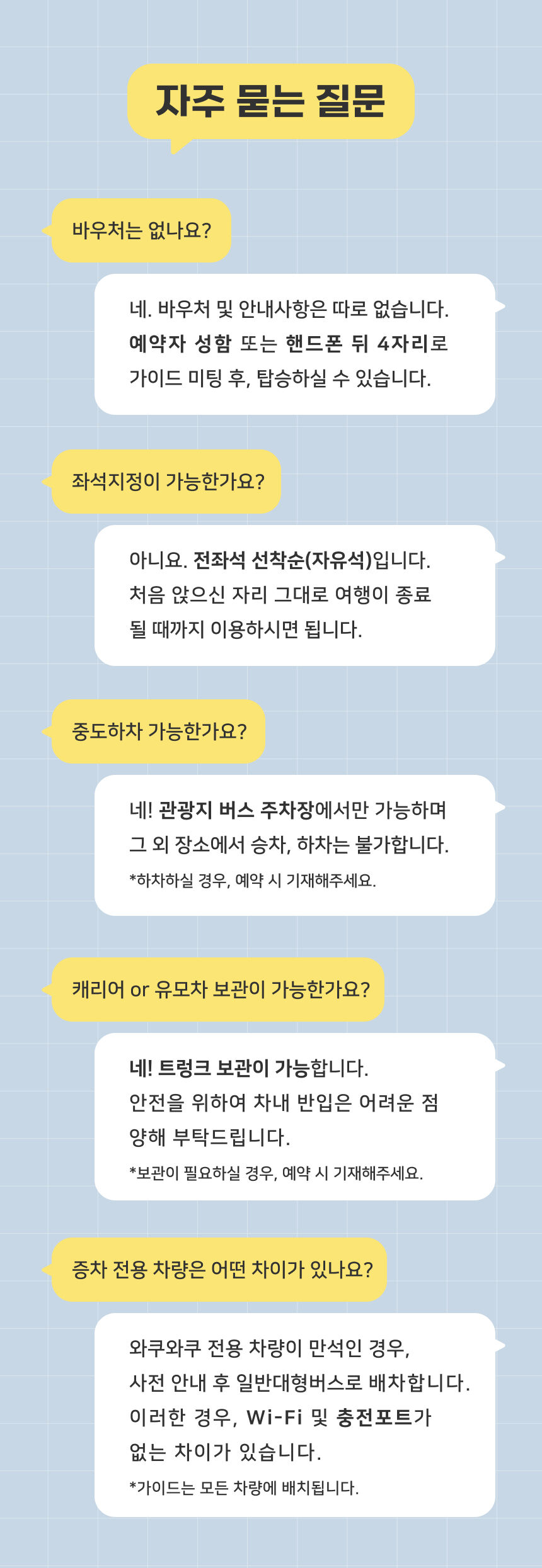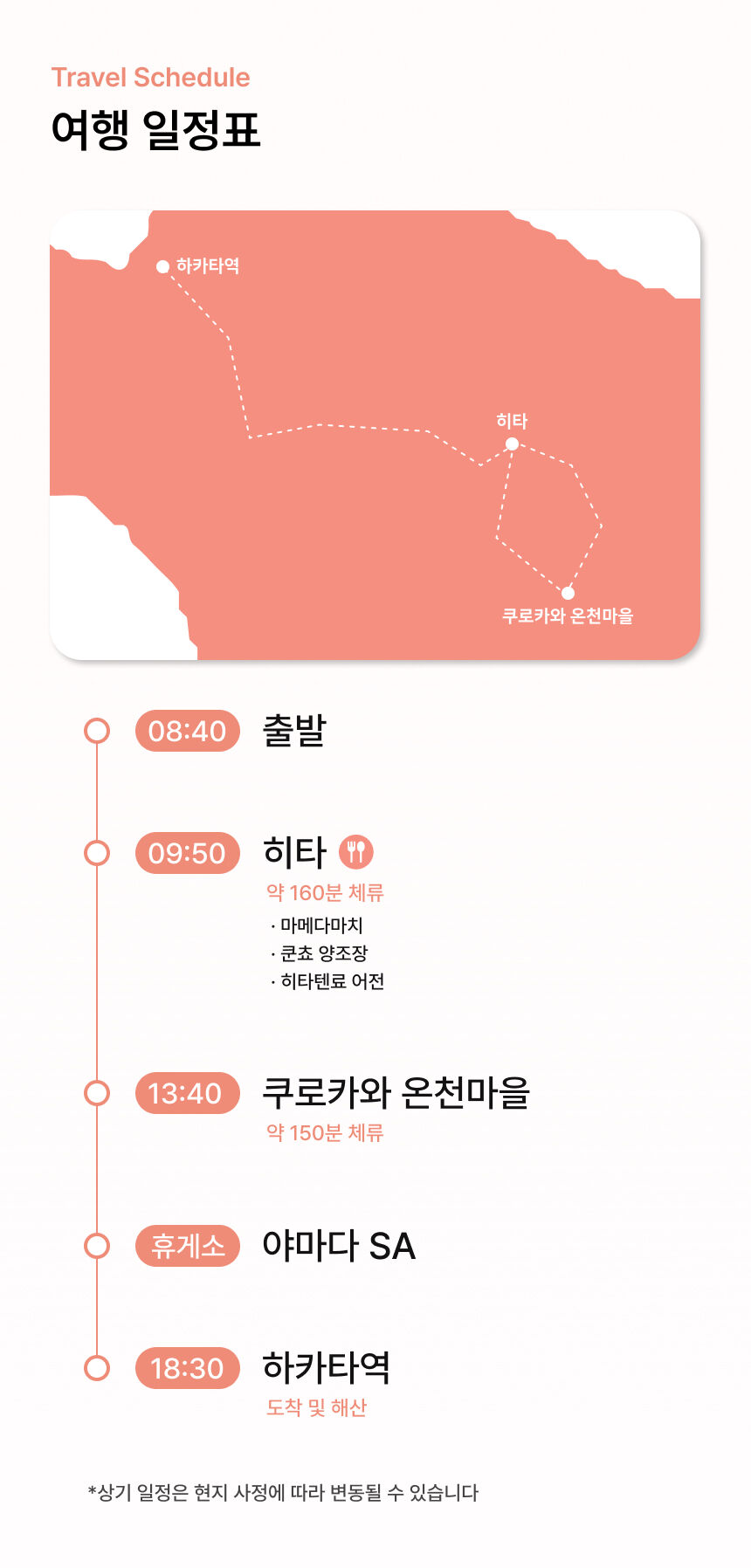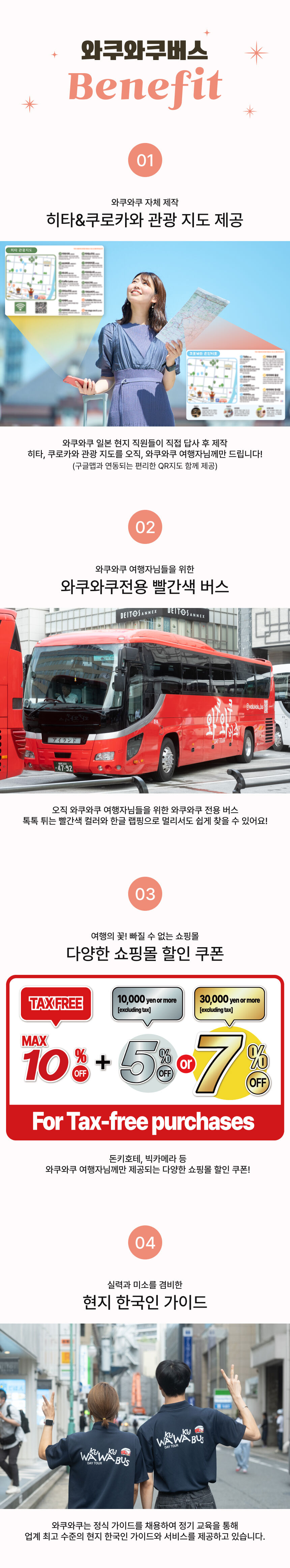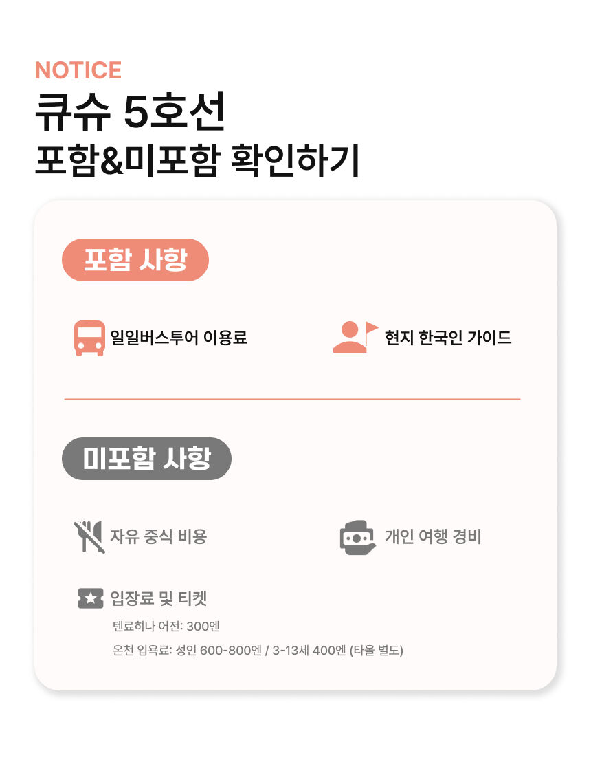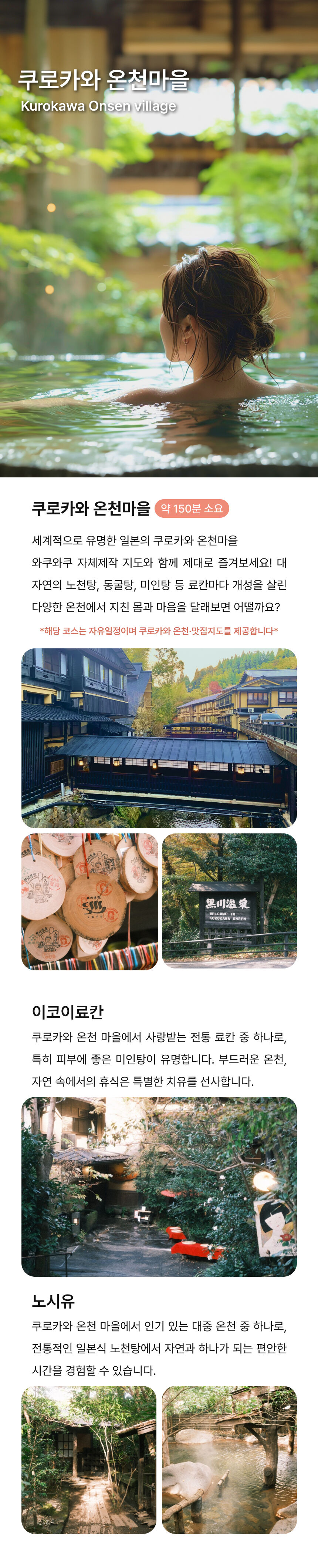 [충전 Wi-Fi] 히타 쿠로카와 온천마을 후쿠오카 일일버스투어 와쿠와쿠 5호선 평점 5 · 리뷰 2건 포함 일일버스투어 이용료 현지 한국인 가이드 불포함 자유 중식 비용 개인 여행 경비 입장료 및 티켓 * 텐료히나 어전: 300엔 * 온천 입욕료: 성인 600-800엔 / 3-13세 400엔(타올 별도) 마이리얼트립에서 예약하기 후쿠오카 목록 도시 목록