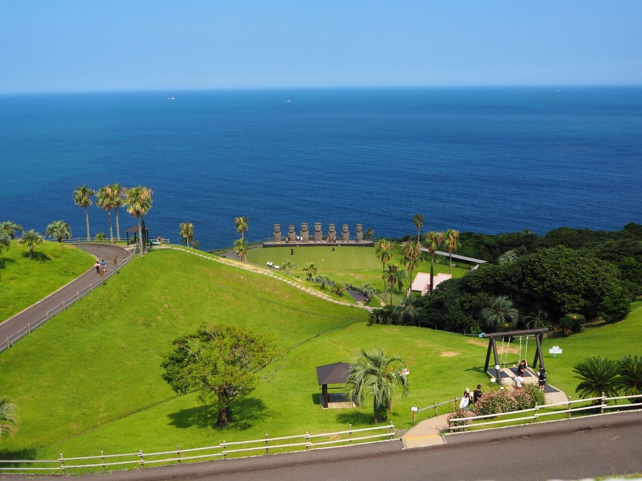 이곳에는 세계 7대 불가사의 중 하나로 꼽히는 모아이상 7개가 완전 복각되어 있으며, 푸른 바다와 어우러진 풍경이 아름답습니다.