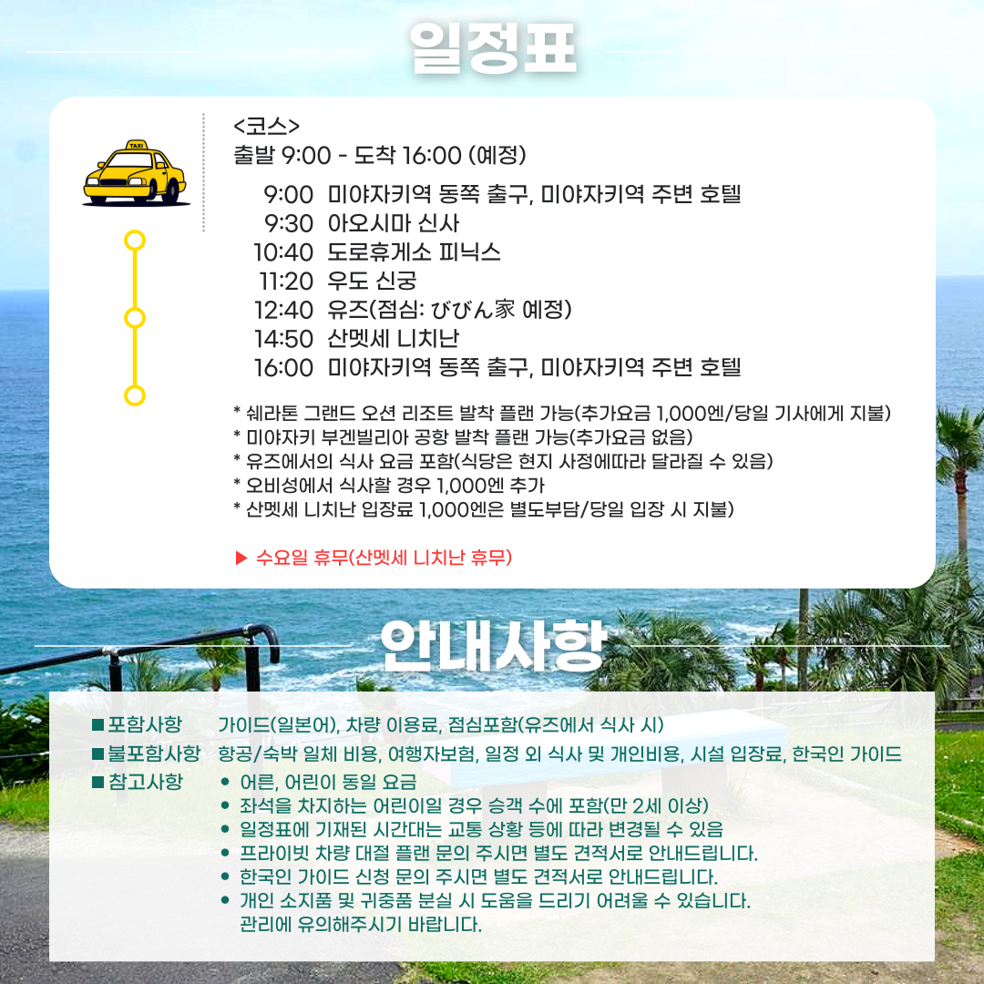 [일일투어] 미야자키 택시관광 - 아오시마, 산멧세 니치난 코스