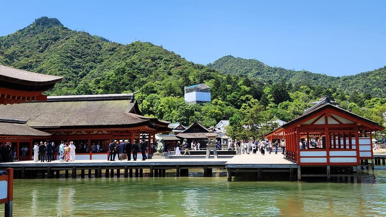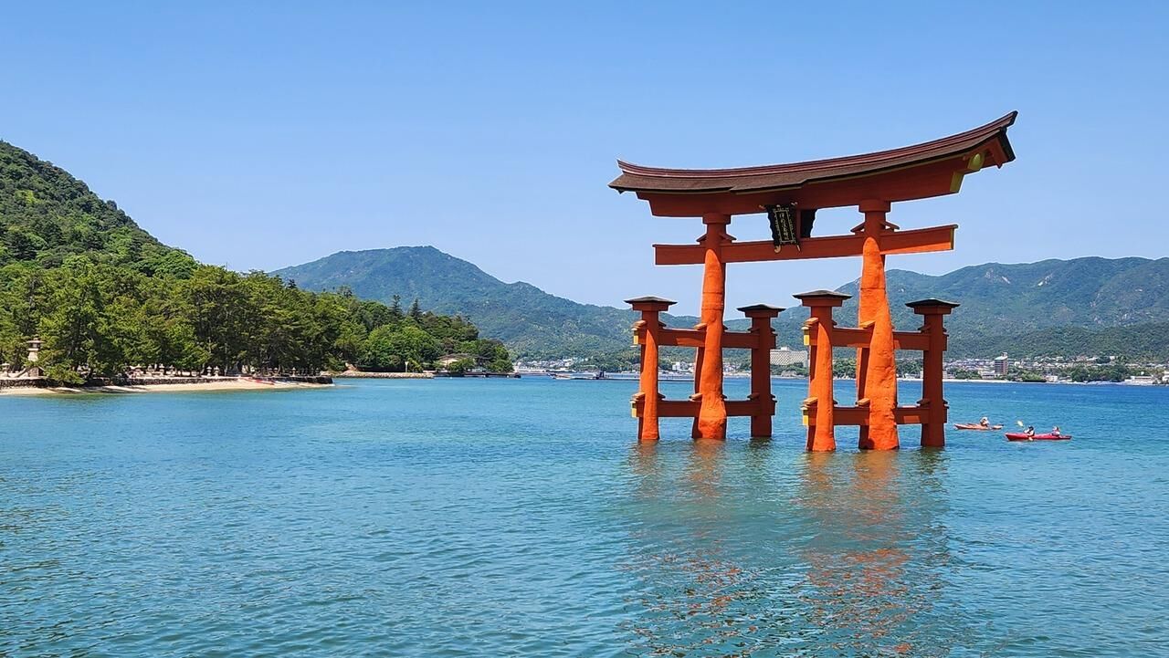 특히 바다 위에 세워진 붉은 토리이가 있는 이쓰쿠시마 신사가 유명합니다.