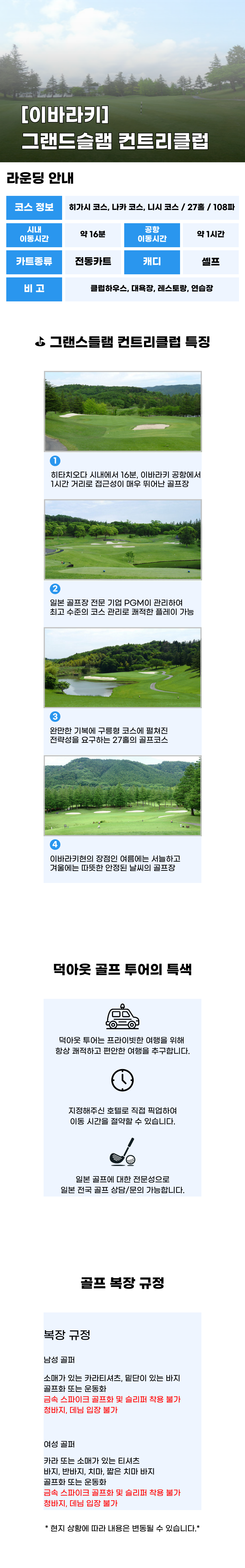 [이바라키 골프 투어] 그랜드슬램18홀 라운딩 (왕복 픽업 선택가능)