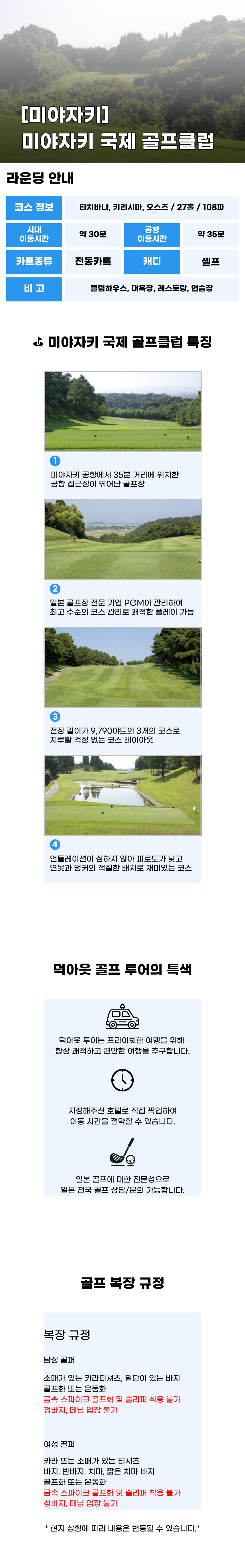 [미야자키 골프 투어] 미야자키 국제 컨트리 클럽 18홀 라운딩 (왕복 픽업 선택가능)