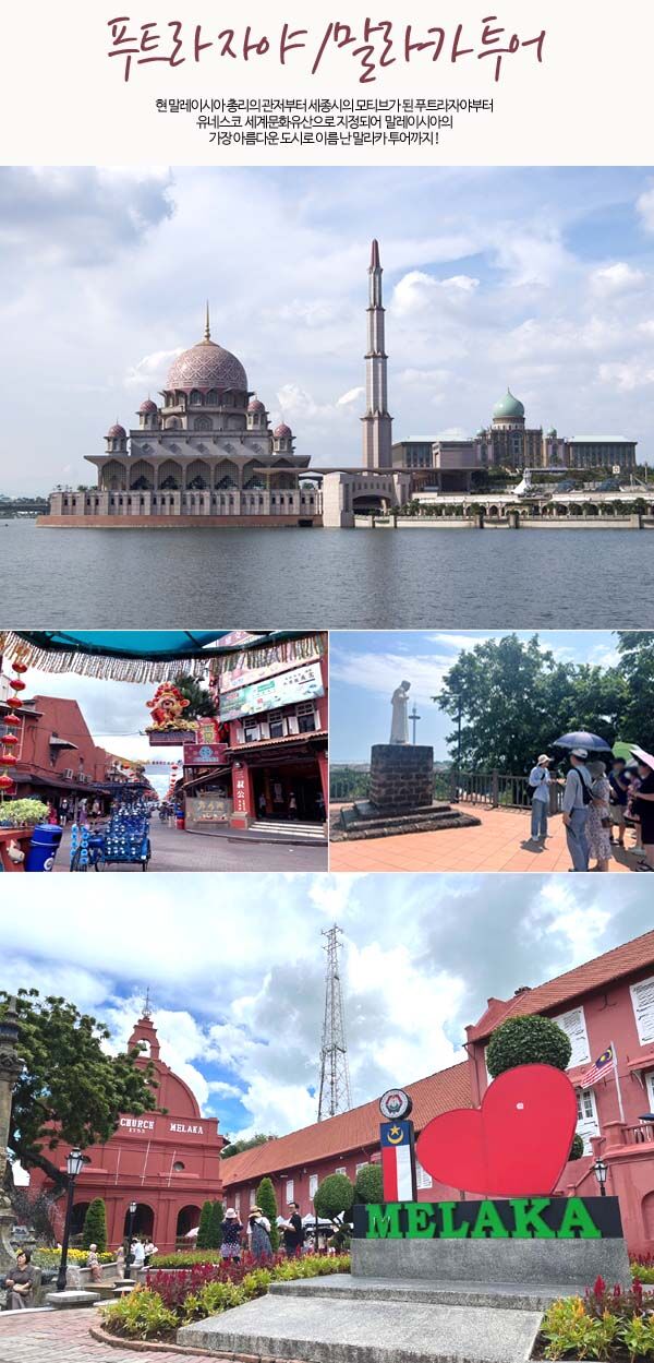 [말라카완전정복]푸트라자야+말라카 알찬일일투어◈숙소무료픽업◈정부승인여행사(주)굿말레이시아 평점 5 · 리뷰 8건 포함 물 코코넛 쉐이크 (현지식) 점심식사 (한식) 저녁식사 트라이쇼&유람선 이용료 한인가이드 (시내) 개별 픽/드랍 서비스 불포함 여행자 보험 개인 경비 포함사항 외 모두 불포함 입니다. 발마사지 현장추가 가능 30분/60분 (추가비용) 마이리얼트립에서 예약하기 쿠알라룸푸르 목록 도시 목록