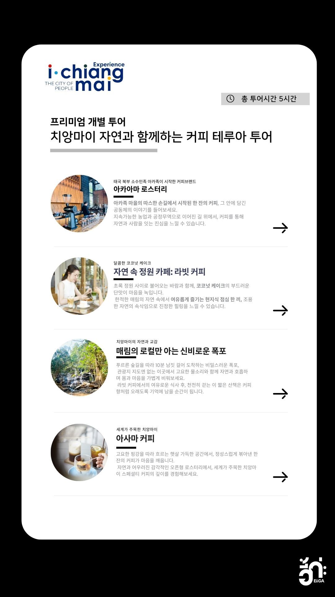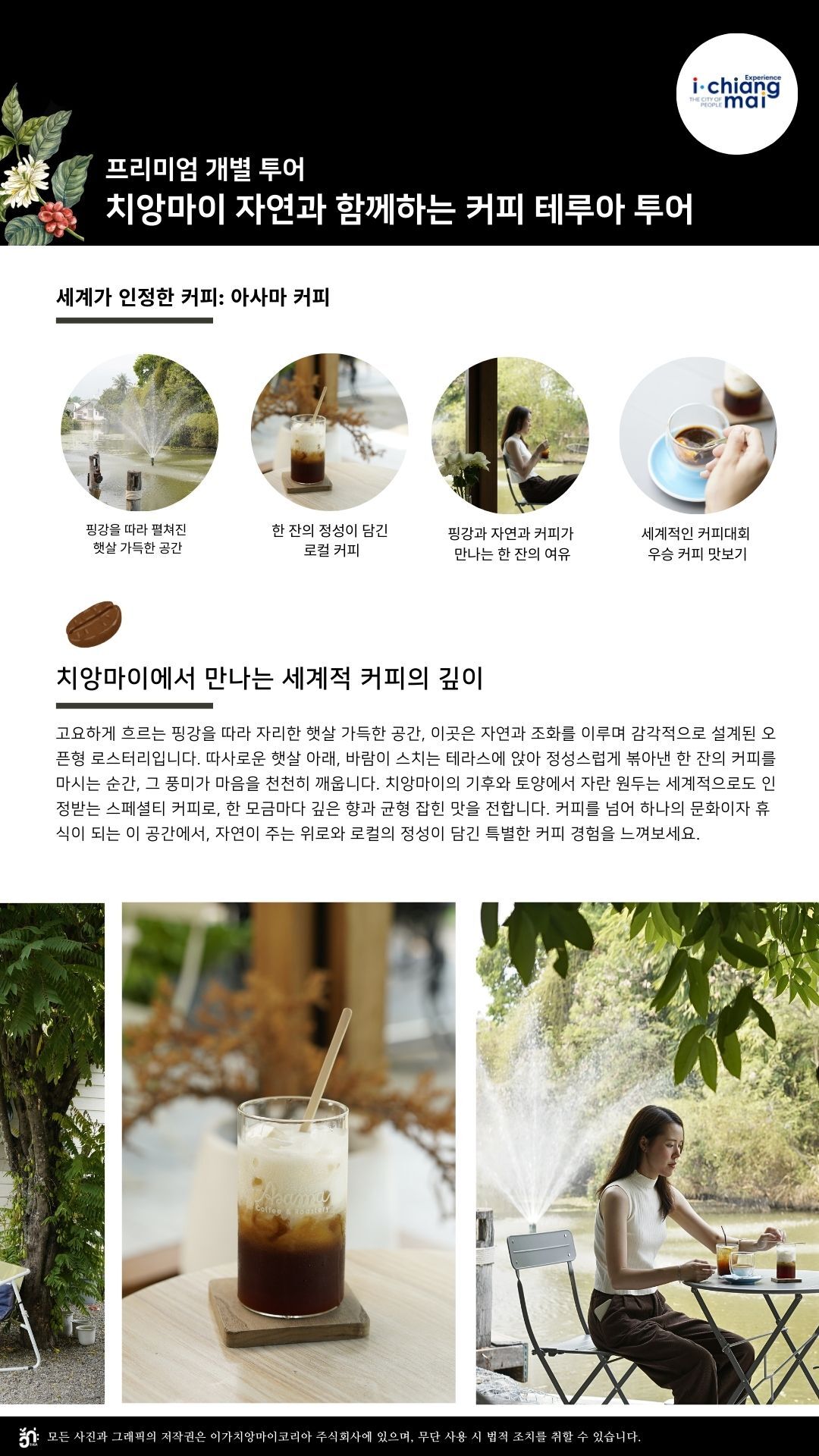아사마 커피, 아카아마 리빙 팩토리, 라빗 커피 등 커피 테루아 관련 주요 로컬 스팟 3곳의 입장이 포함되어 있습니다.