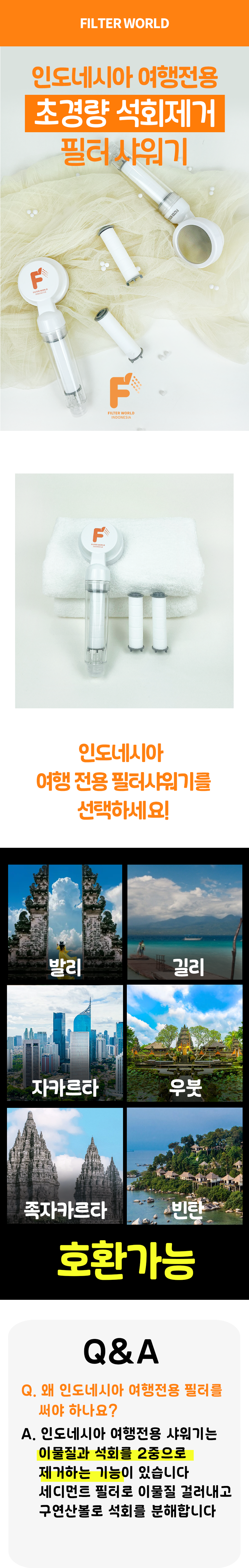 석회제거 초경량 발리 여행전용 필터샤워기+리필2개 필터월드 인도네시아 자카르타 빈탄 롬복 포함 샤워기1, 구연산볼1, 필터3(샤워기 내장1), 택배비 불포함 없음 마이리얼트립에서 예약하기 자카르타 목록 도시 목록
