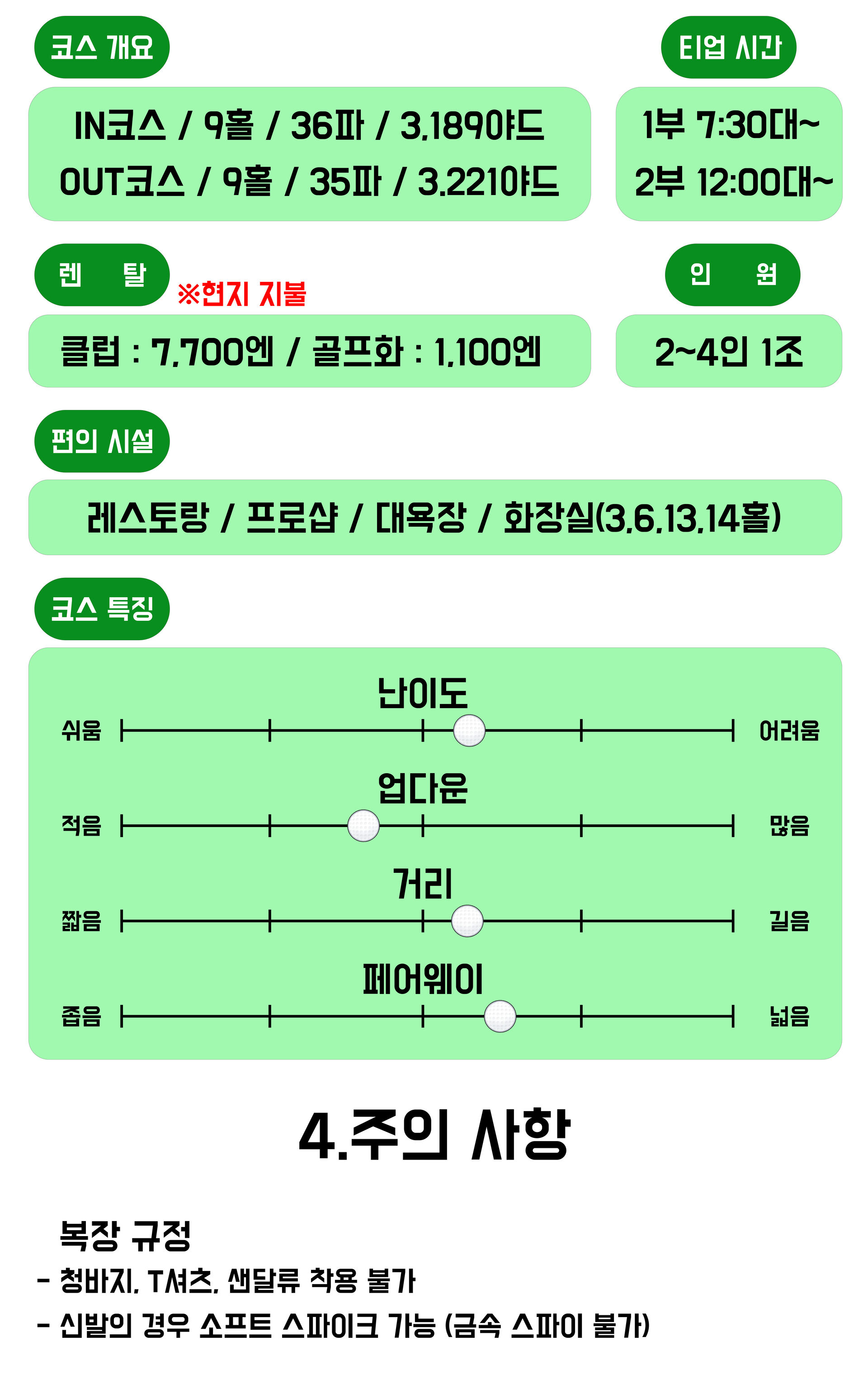 [미야코지마 골프] 에메랄드 코스트 골프 링크스 (그린+카트피 / 락커 불포함/ 송영옵션) 평점 5 · 리뷰 1건 포함 - 그린피 - 카트피 불포함 - 락커 불포함 - 캐디 불포함 - 여행자 보험 - 기타 개인 경비 마이리얼트립에서 예약하기 오키나와 목록 도시 목록