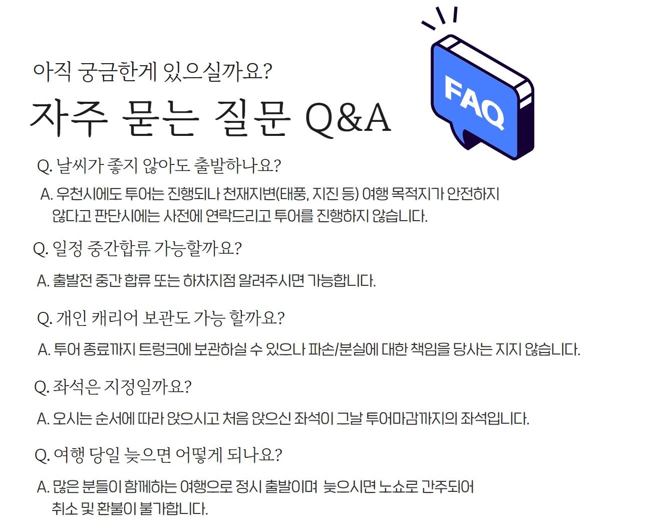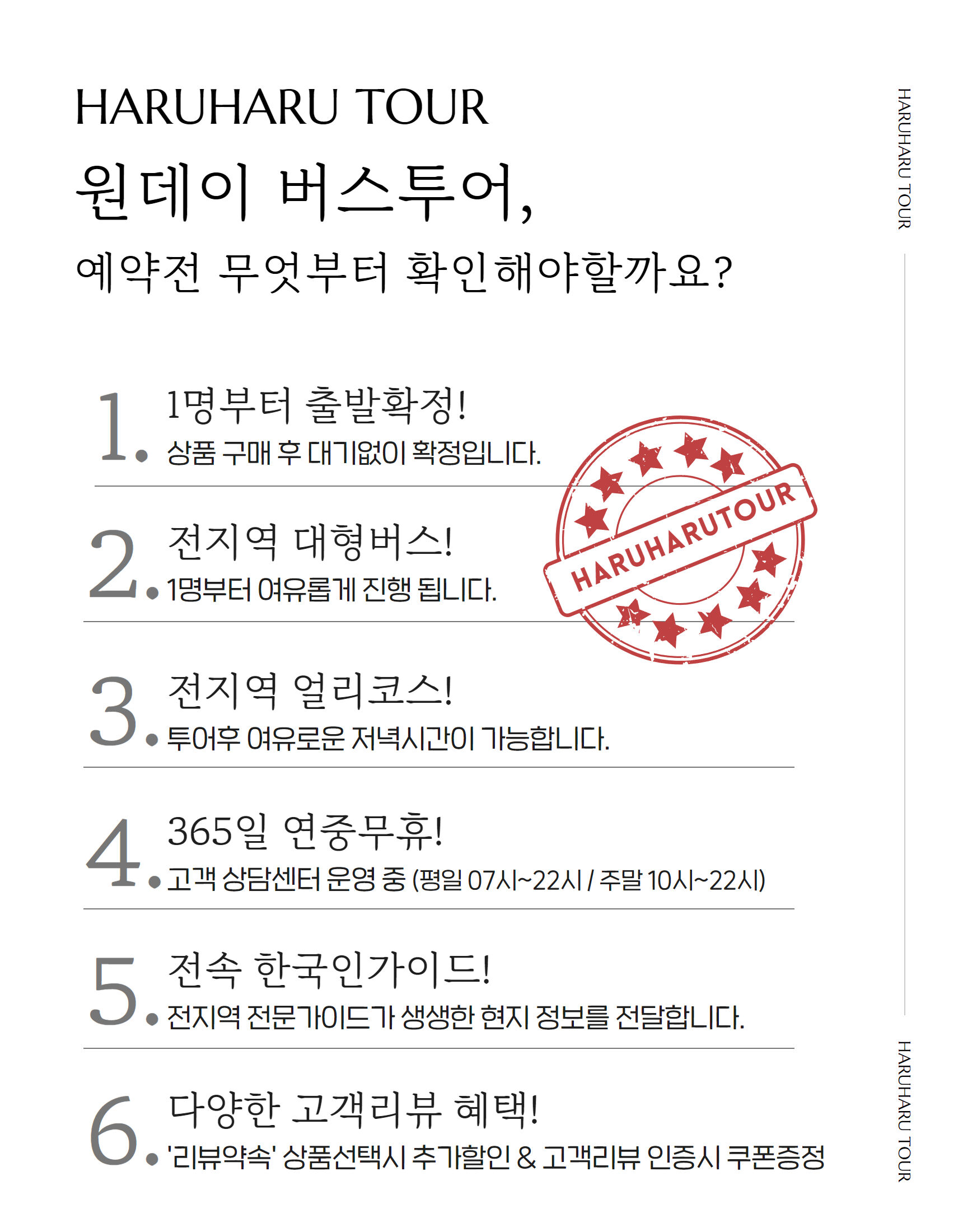 ✔️ 상기 일정 및 방문지는 투어 당일 기상 상황 및 도로 상황에 따라 변동될 수 있습니다.