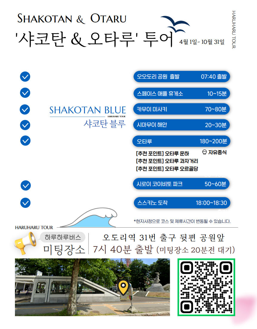 [1인 출발 확정] 북해도 샤코탄 오타루 일일 버스투어 삿포로 출발 일본 여행