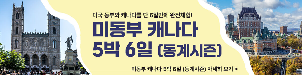 [제이지버스투어] 몬트리올 퀘벡 2박 3일 (뉴욕출발) 평점 5 · 리뷰 1건 📣모객현황📣💛4월 23일 출발확정💛 / 추가 가능 ✨ 제이지투어의 다른 상품 더 둘러보기✨ 포함 차량 및 가이드 전일정 2박 호텔 숙박(2인 1실 기준) 총 5식 (1일차 중식, 2일차 3식, 3일차 조식 / 퀘벡 랍스터 정식, 캐나다 뷔페 등 특식 포함) 각 지역 자유시간 제공 불포함 여행자 보험 기타 여행 경비 1일차 석식, 3일차 중식 가이드 팁비 인당 $15 총 $45 (3일/현금) 마이리얼트립에서 예약하기 뉴욕 목록 도시 목록