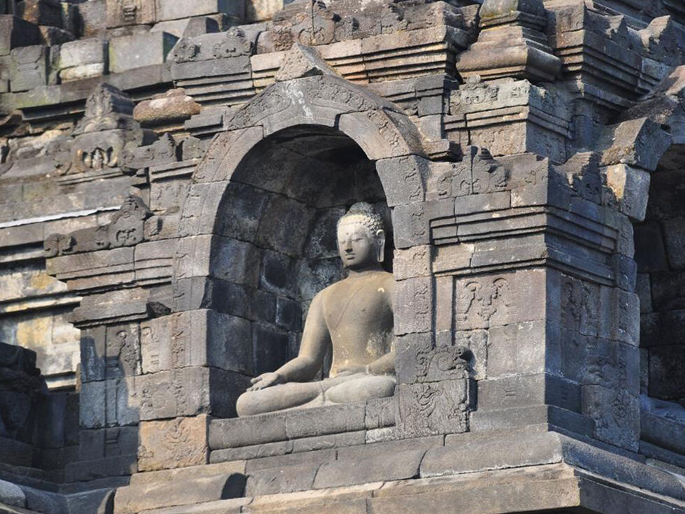 벽면에는 부처의 생애와 불교 교리를 새긴 2,600여 개의 부조가 정교하게 새겨져 있습니다.