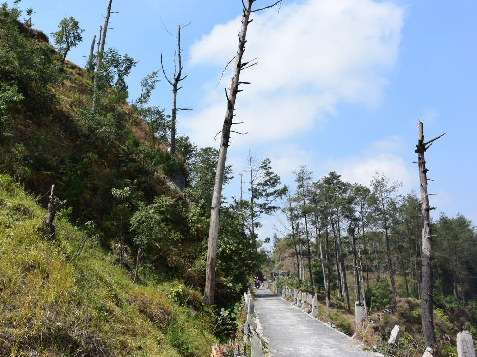 멀리 므라삐 화산의 능선이 서서히 다가옵니다.