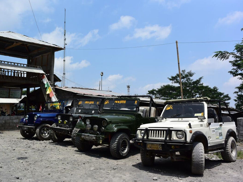 므라삐 화산투어는 큼직한 오프로드 지프들이 도열해 있는 집결지에서부터 시작됩니다.