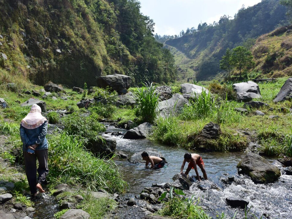 옆 시냇가에서 물놀이를 하고 있는 현지 아이들을 마주쳤습니다.