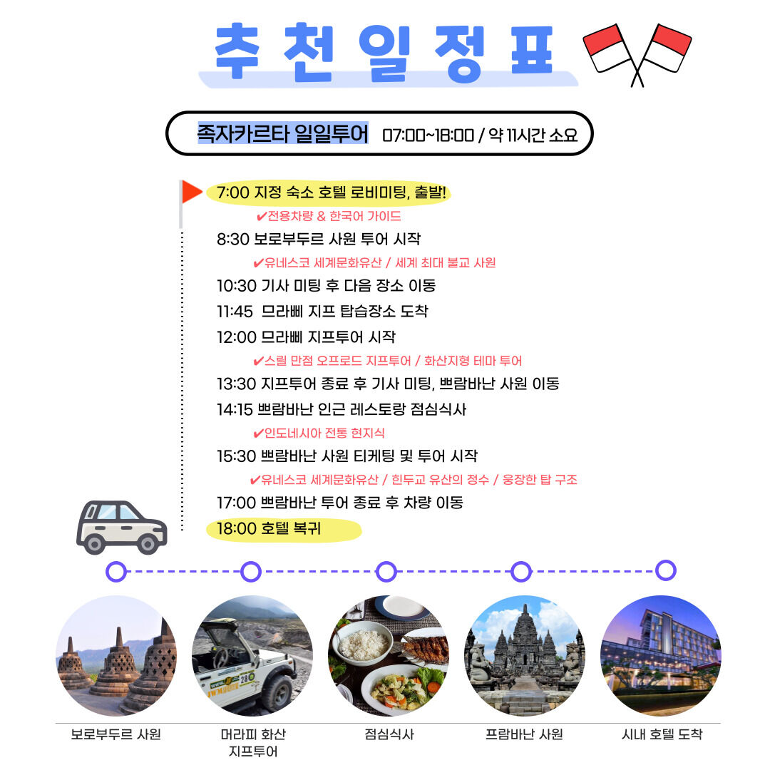 인도네시아 족자카르타 현지 일일투어 (보로부두르, 므라삐 지프, 프람바난 한국어 가이드)