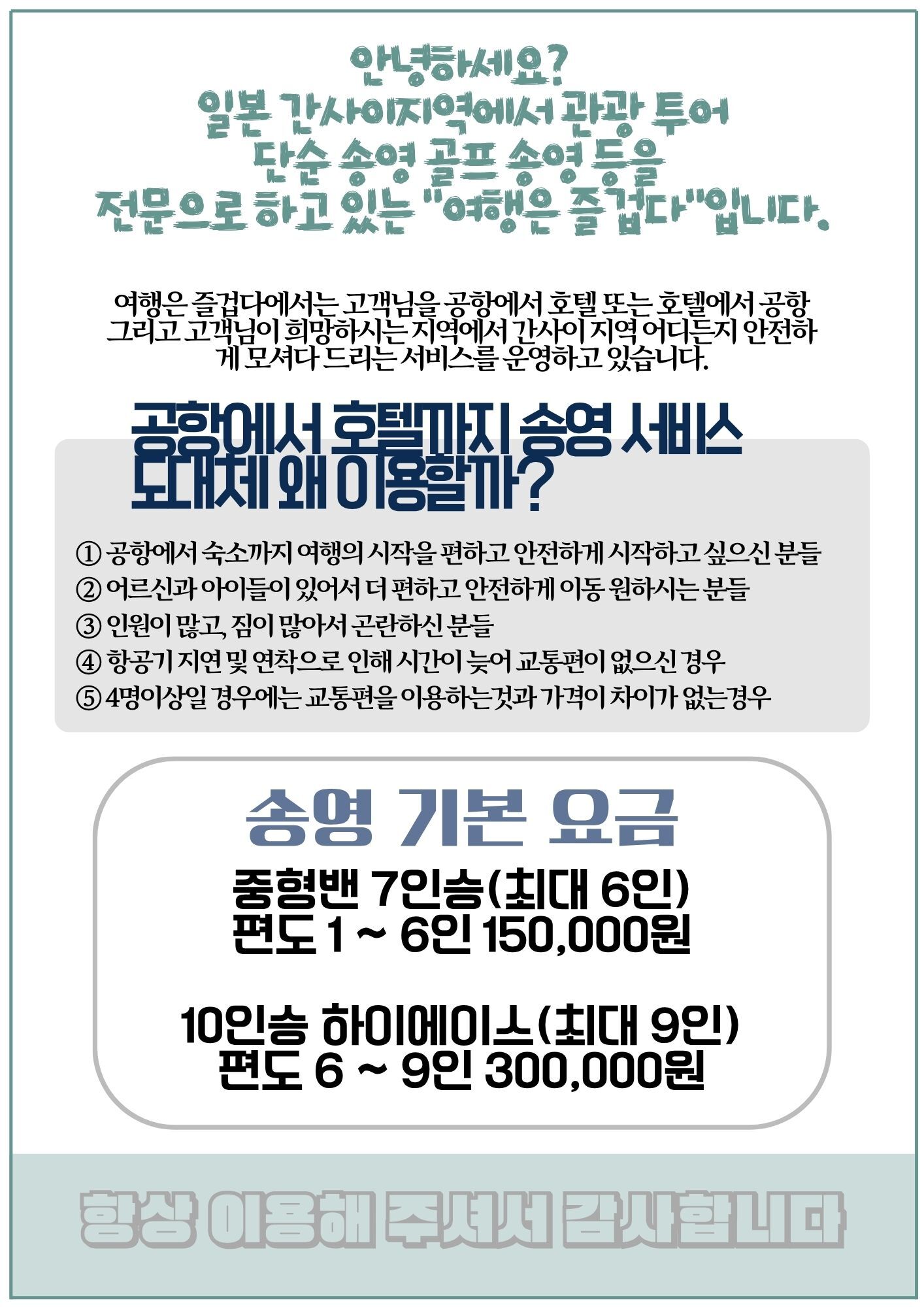 [ 간사이공항 ↔ 유니버셜스튜디오 ] 픽업 샌딩 단독차량 7인승밴 한국인가이드