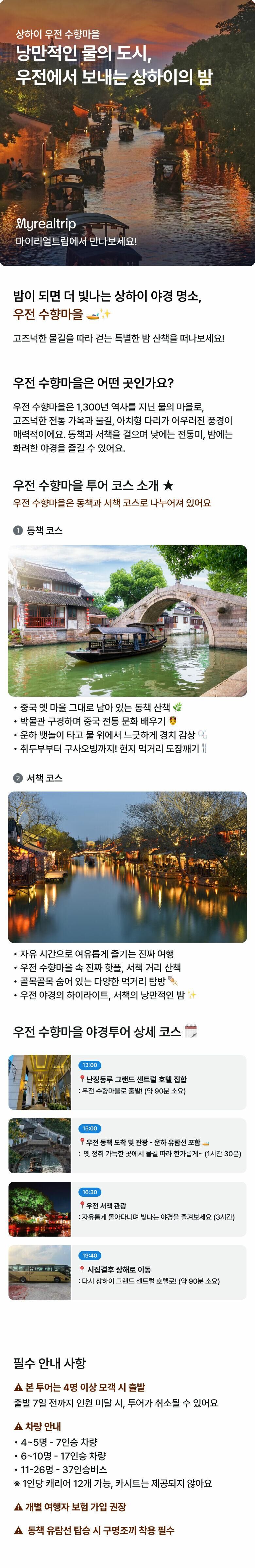 [초특가즉시확정★VIP리무진버스★-상해선물3종세트-한국어전문가이드]상하이우전수향마을야경투어 평점 4.9850374064838 · 리뷰 401건 포함 동책,서책 관광지입장료 동책 운하유람선 전용 버스 한국어 전문가이드 불포함 점심 식사, 저녁 식사 및 관광지 내 기타 개인소비 비용 마이리얼트립에서 예약하기 말레 목록 도시 목록