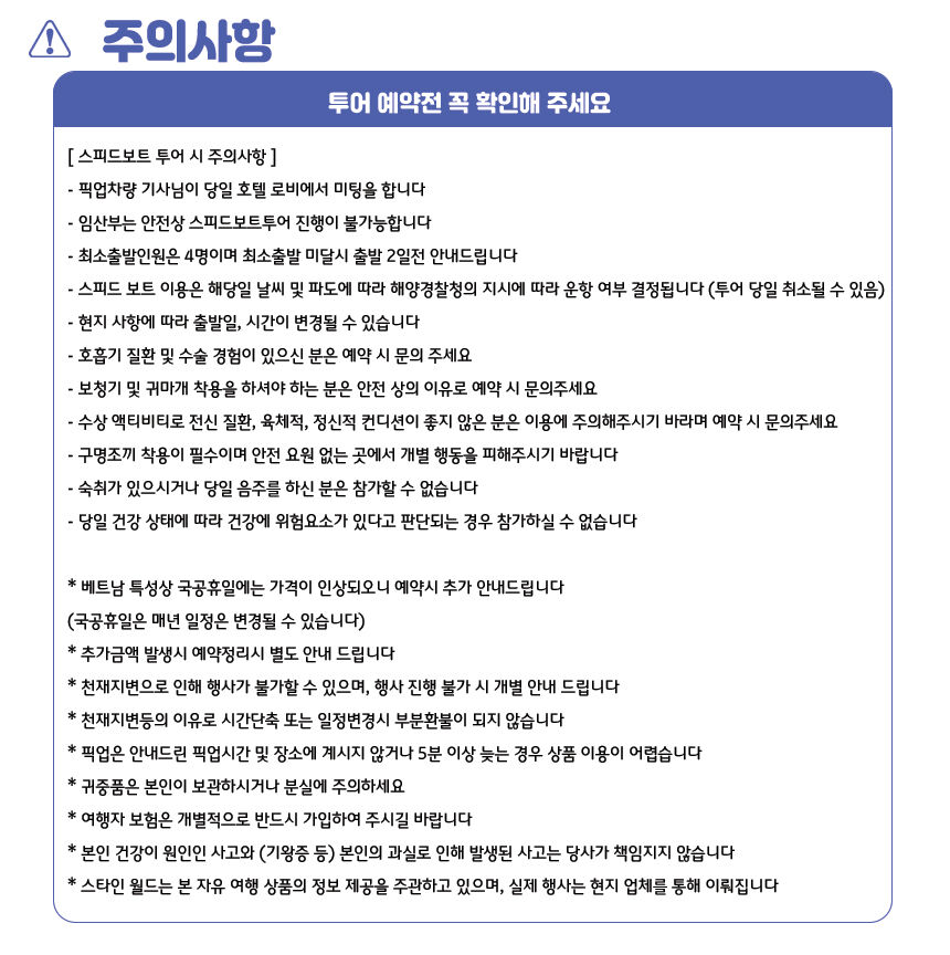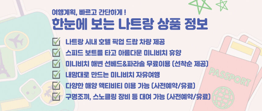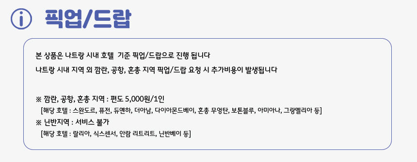 ※ 나트랑 시내 외 픽업/드랍 시 추가비용 발생