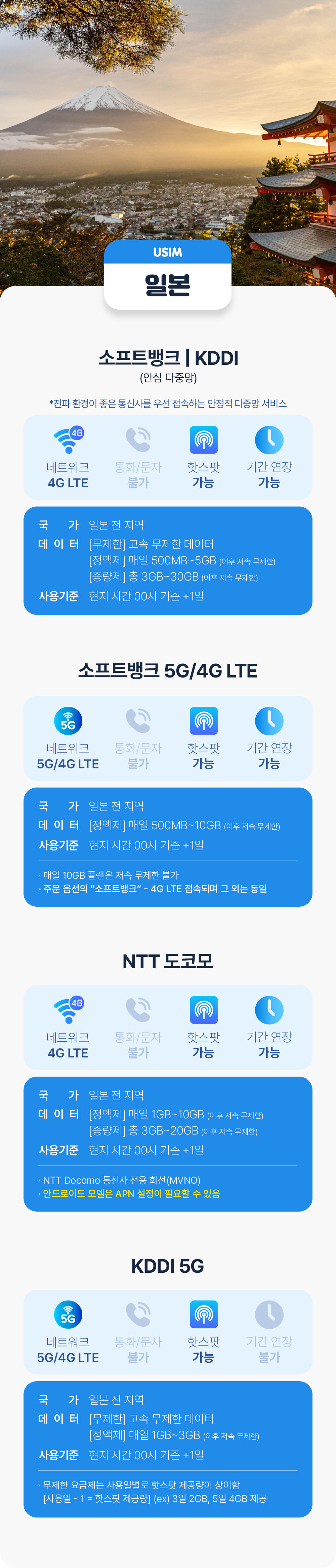 일본유심 5G 무제한 데이터 소프트뱅크 유심칩 인천 김해 공항 수령 가능 평점 5 · 리뷰 2건 포함 유심 + 유심케이스 + 유심핀 + 사용설명서 불포함 없음 마이리얼트립에서 예약하기 김해 목록 도시 목록