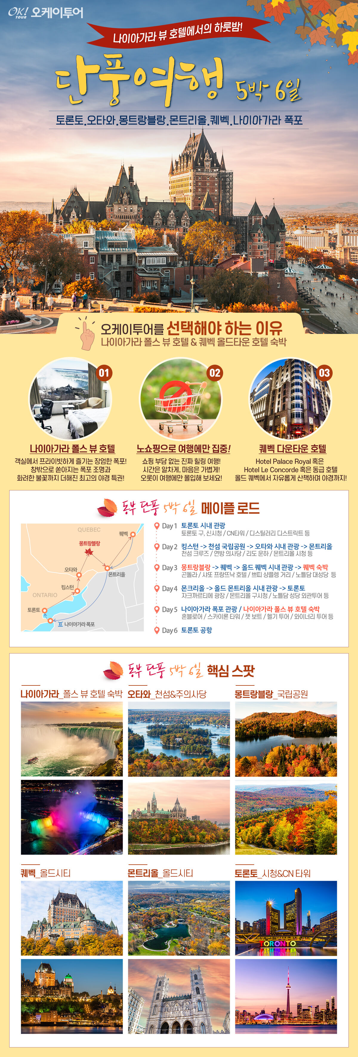 [5박6일/토론토출발] 오케이투어 퀘벡 · 몬트리올 · 오타와 · 나이아가라 폴스뷰 숙박!
