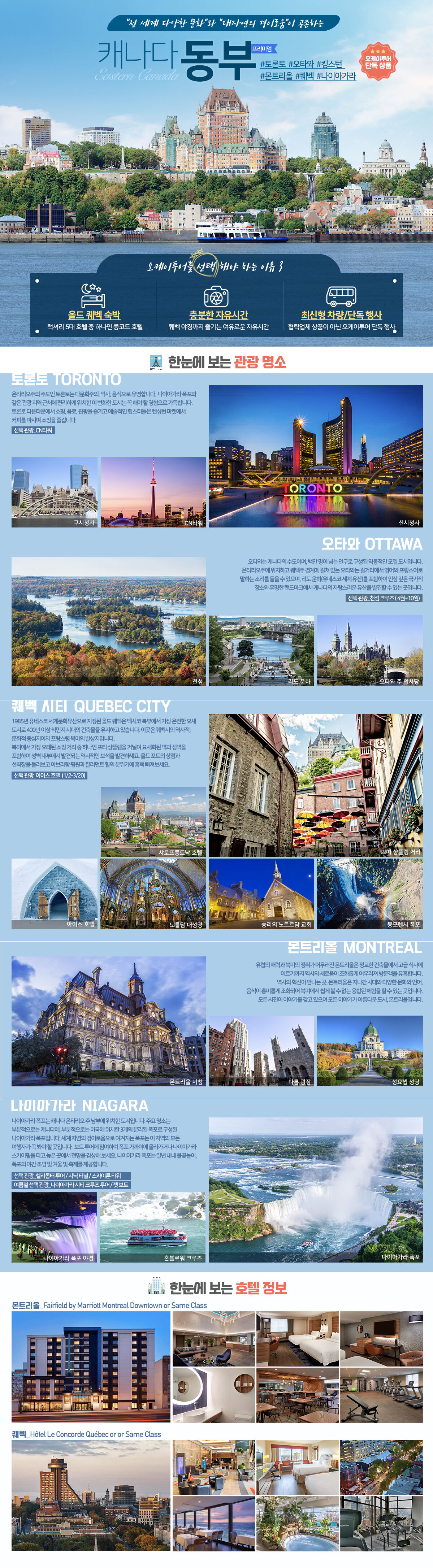 캐나다 동부 주요 도시 : 토론토, 퀘벡, 몬트리올, 오타와, 몽트랑블랑, 나이아가라 등 일정에 맞게 선택하세요!