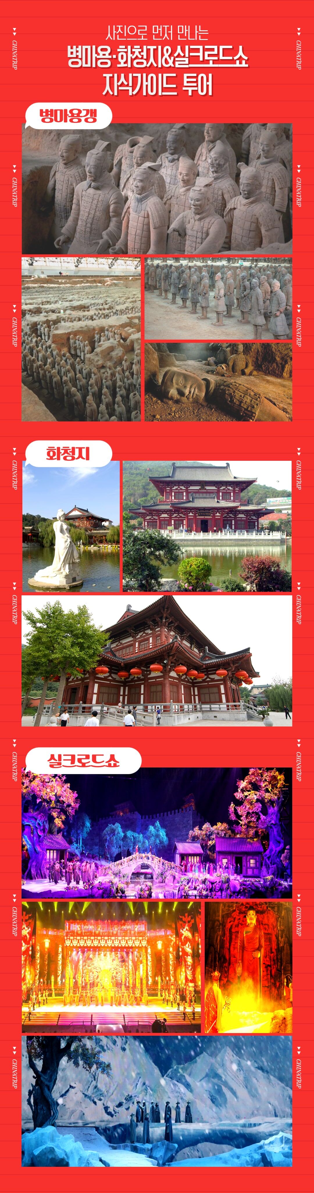 실크로드쇼 미 선택시 화청지>병마용갱>진시황룽 관광 후 시내로 경유하여 하차 >