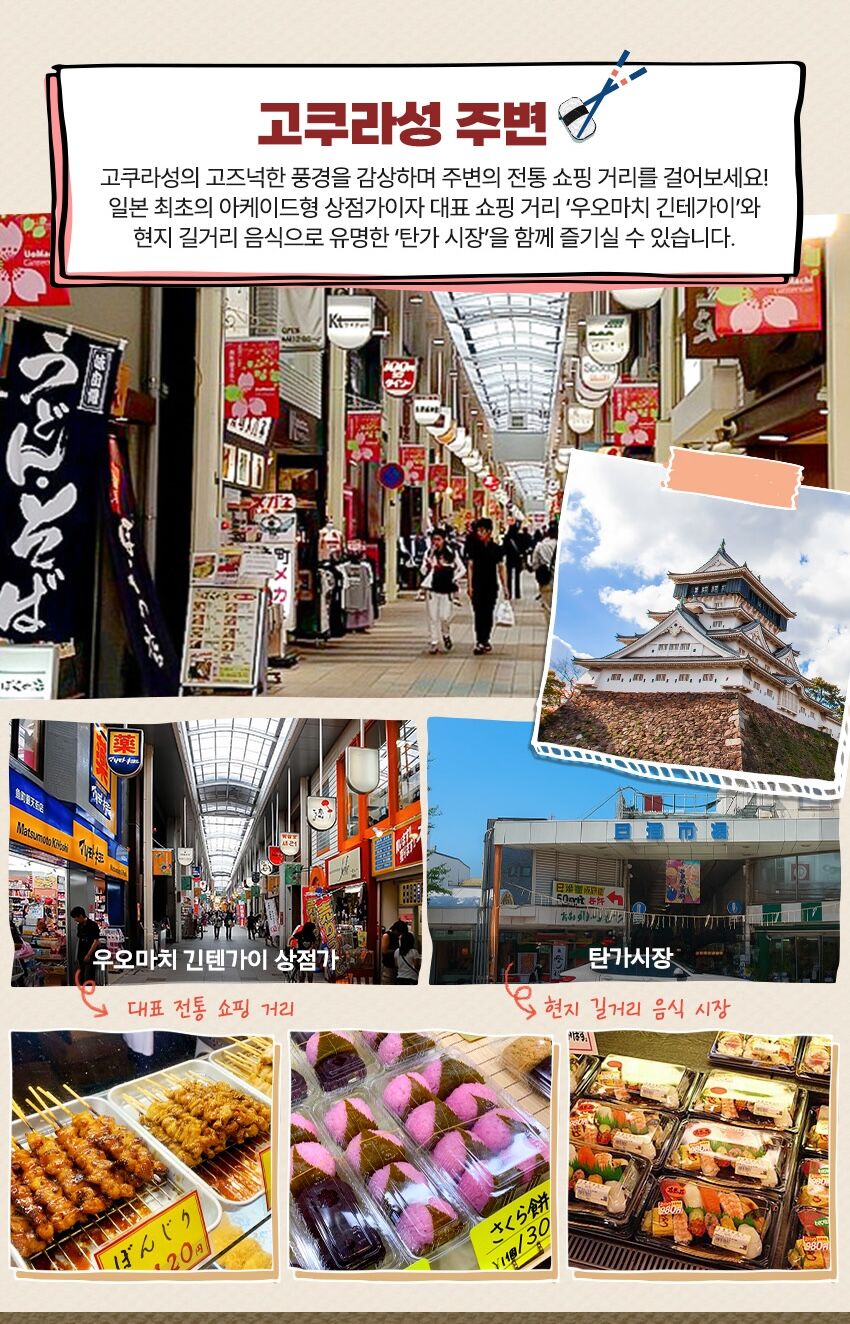 사무라이의 숨결, 고쿠라성과 현지 시장의 활기를 한눈에📸