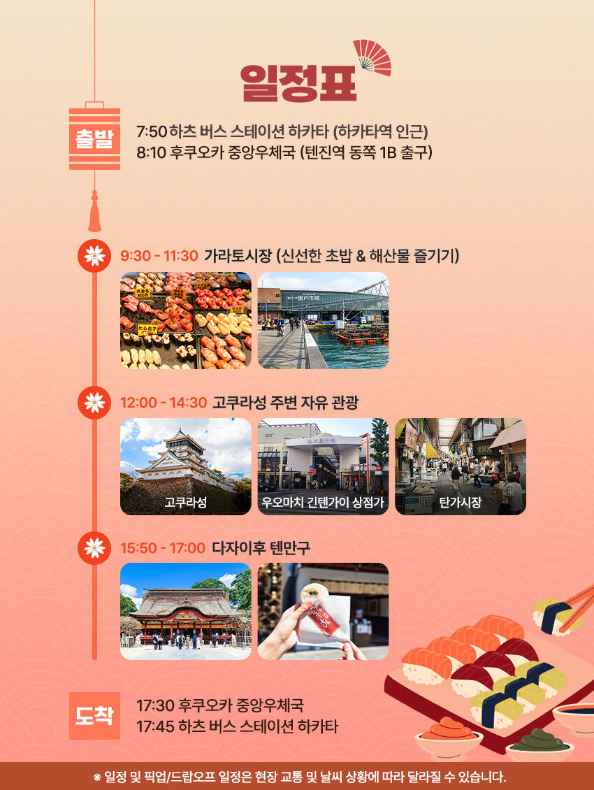 [미식&역사] 스시+길거리음식+고쿠라성+다자이후! 일일버스투어! 기타큐슈투어! 후쿠오카출발