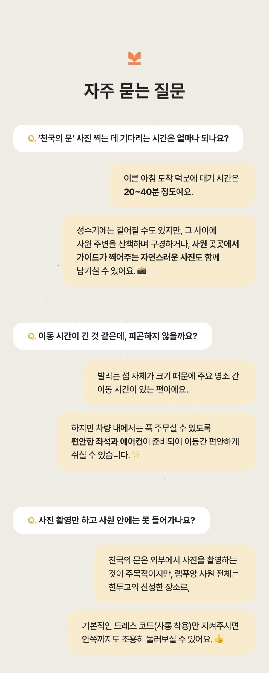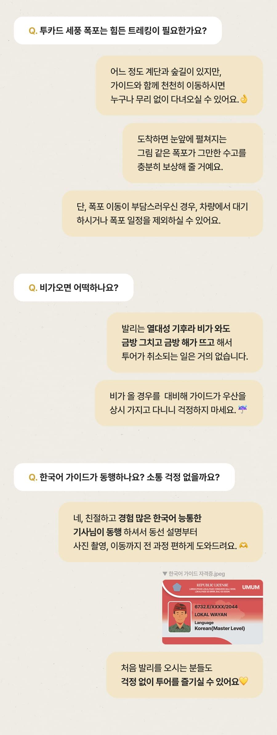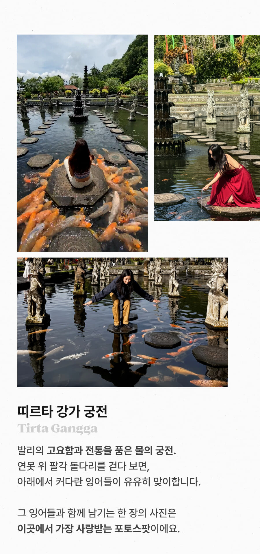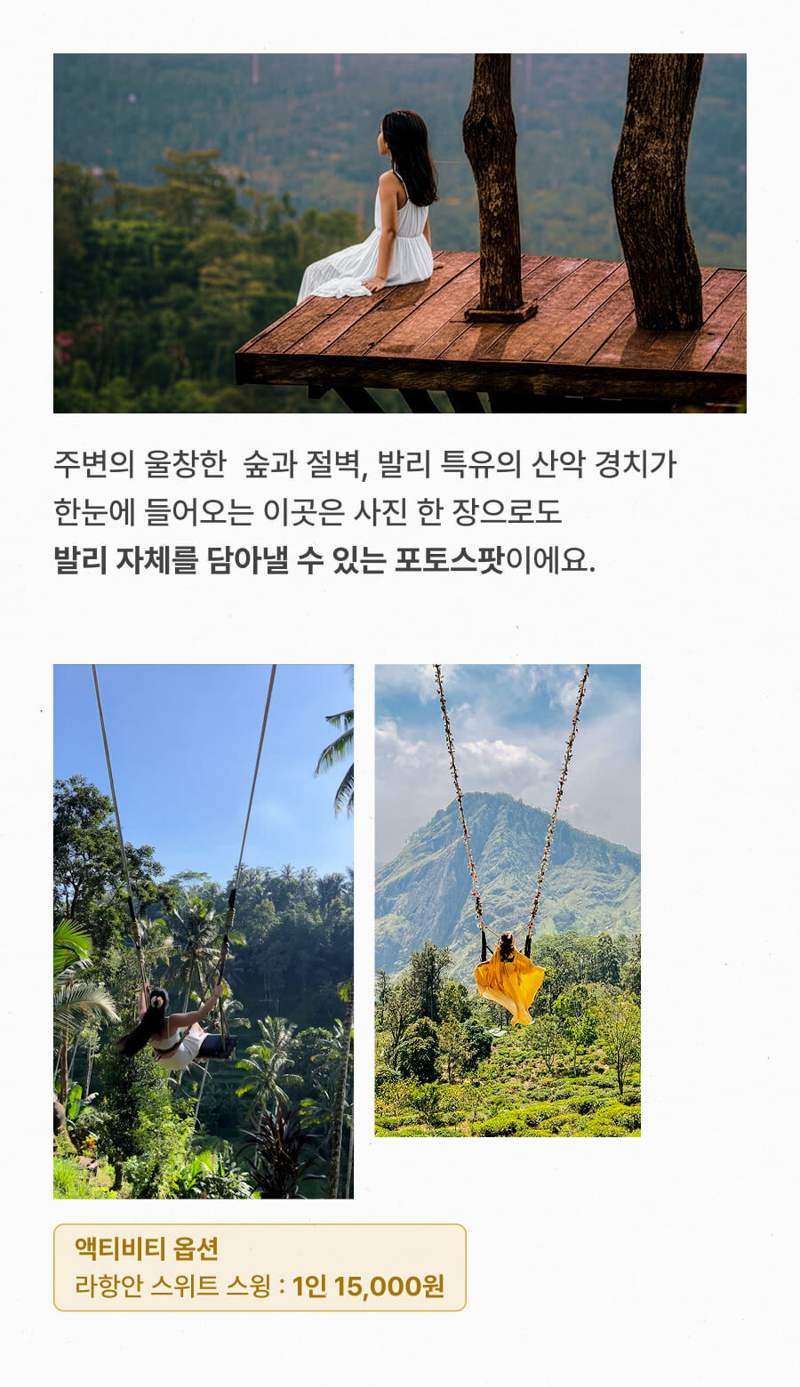 [단독이벤트/로컬페이지] 발리 렘푸양 동부투어 (천국의 문/전지역 무료픽드랍/한국어가이드) 평점 5 · 리뷰 6건 포함 1. 발리 전지역 무료 픽업&드랍 서비스 2. 정부 공식 한국어 가이드 3. 최대 10시간 차량 이용 4. 모든 입장료 및 정부세금 5. 365 여행 상담원 6. 촬영 서비스 7. 발리 가이드맵 8. 발리 전통의상 세롱 대여 불포함 ﹒중식비용 ﹒선택 추가 옵션비용 (폭포 레프팅 + 런치뷔페 인당 50,000원 ) 마이리얼트립에서 예약하기 발리 목록 도시 목록
