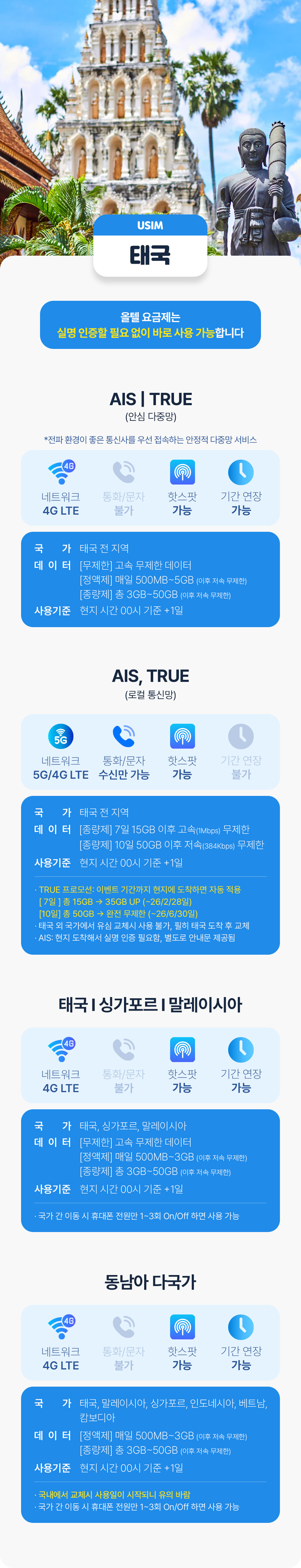 태국유심 방콕 푸켓 해외여행준비물 인천 김해 공항수령 치앙마이 AIS 무제한 유심칩 평점 5 · 리뷰 1건 포함 유심 + 유심케이스 + 유심핀 + 사용설명서 불포함 없음 마이리얼트립에서 예약하기 푸켓 목록 도시 목록