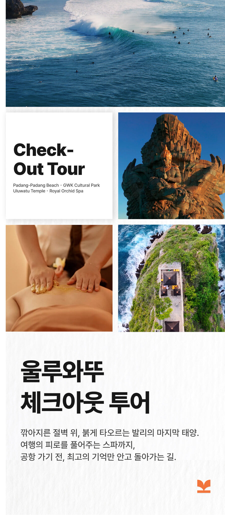 [단독이벤트/로컬페이지] 울루와뚜 체크아웃 투어 (공항 드랍/마사지 포함/단독투어)