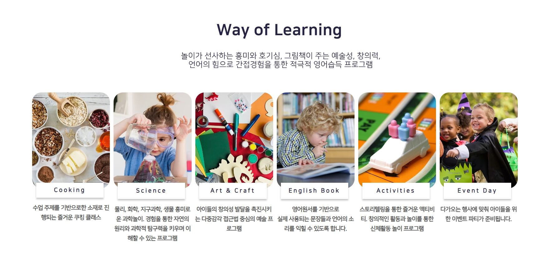 예시 A) Art&Craft + Science Experiment + Activities (50분간 진행)