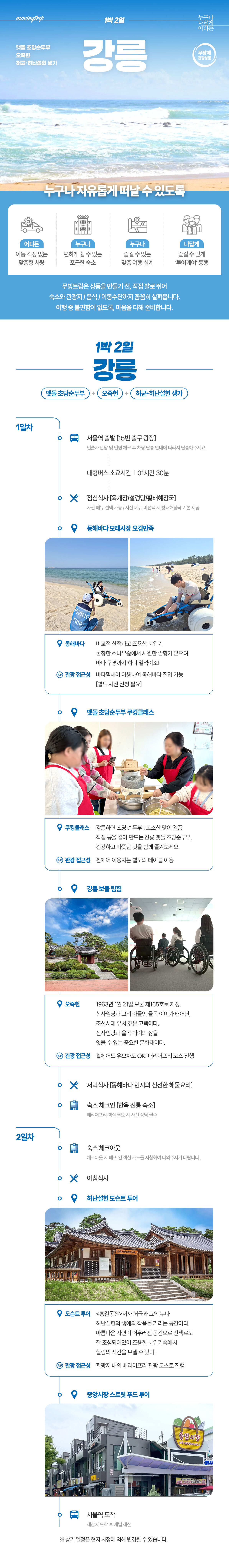 [서울출발 강릉 1박 2일] 휠체어· 유모차 가족도 OK! No옵션 No쇼핑 패키지