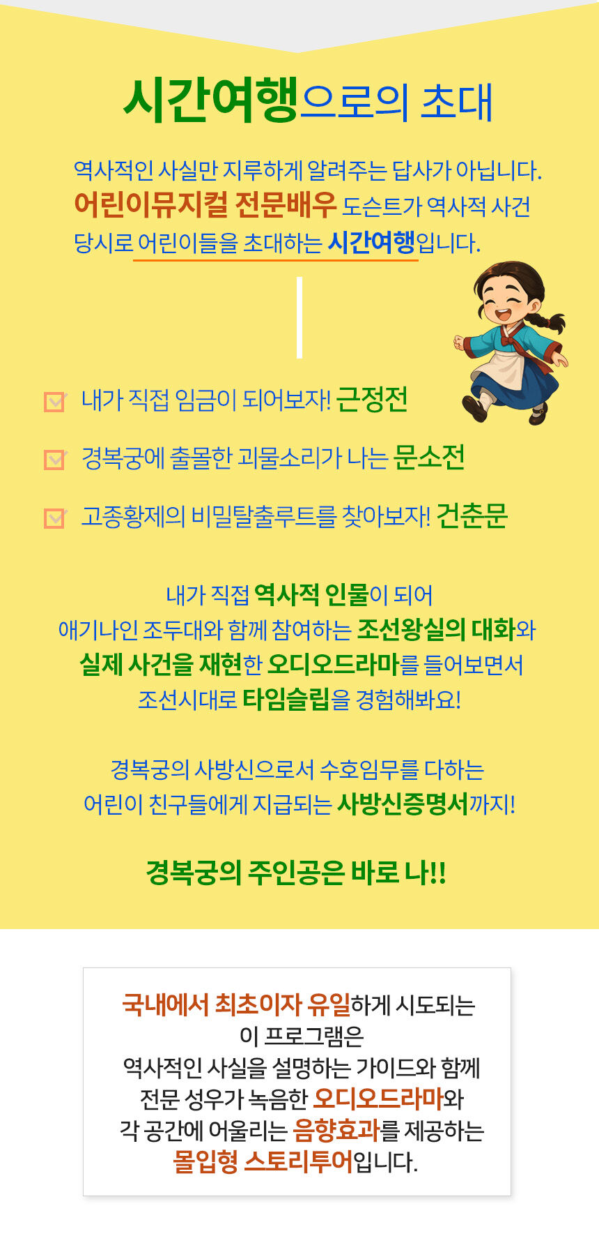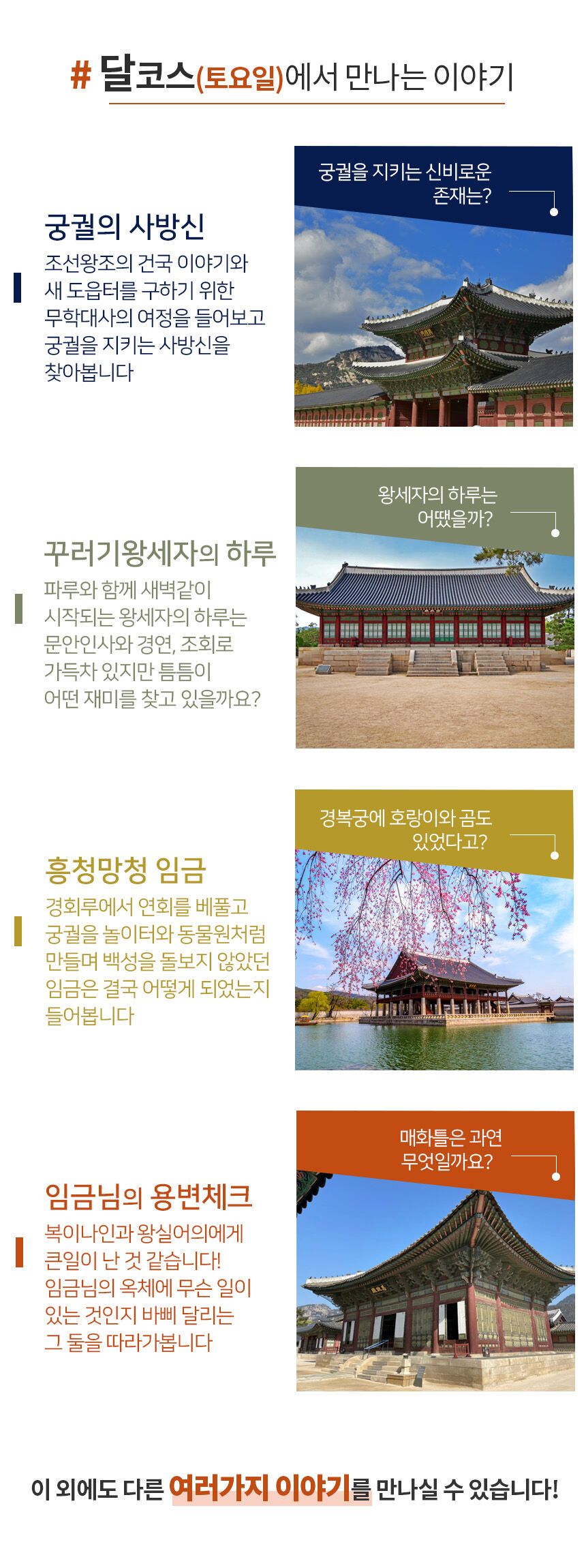 사방신과 함께하는 경복궁 대모험(보호자 1인 무료) 본문: 로컬 DB 동기화 상세 평점 5 · 리뷰 8건 포함 가이드비, 오디오기기 대여비 불포함 개인보험, 궁궐 입장료(어린이 무료) 마이리얼트립에서 예약하기 세종 목록 도시 목록