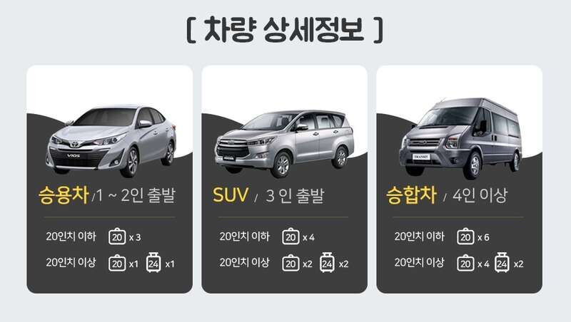 승용차 : 20만동 / SUV : 30만동 / 승합차 : 50만동