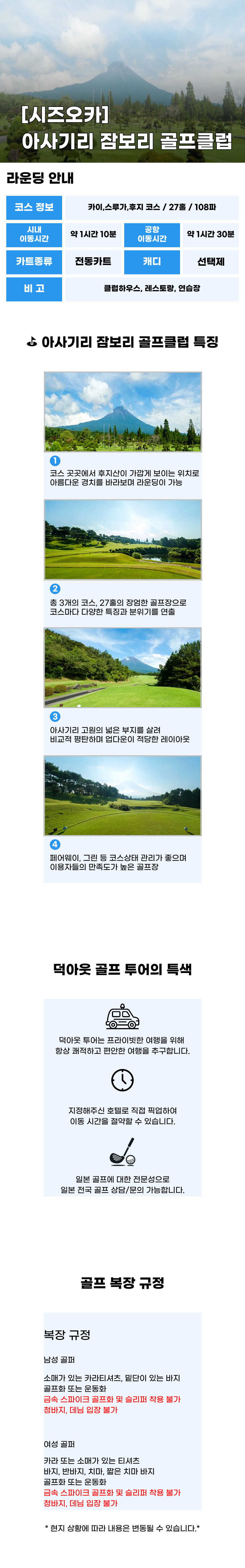 [시즈오카 골프 투어] 아사기리 잠보리 골프클럽 18홀 라운딩 (픽업 선택가능)