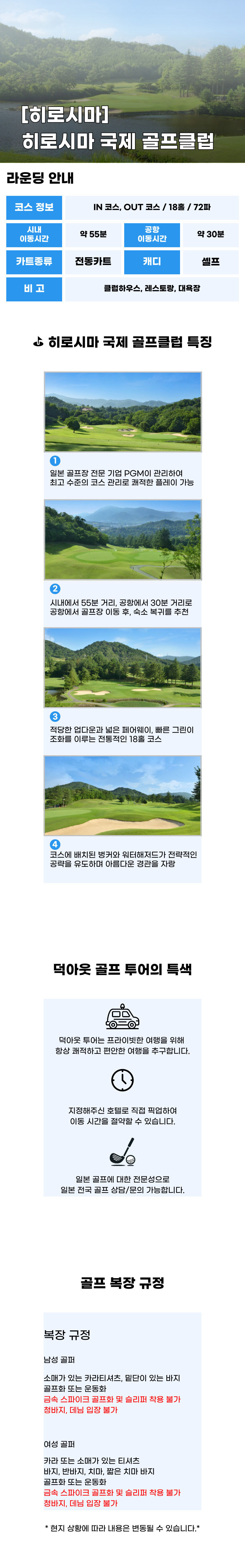 [히로시마 골프 투어] 히로시마 국제(PGM) 골프클럽 18홀 라운딩 (픽업 선택가능)