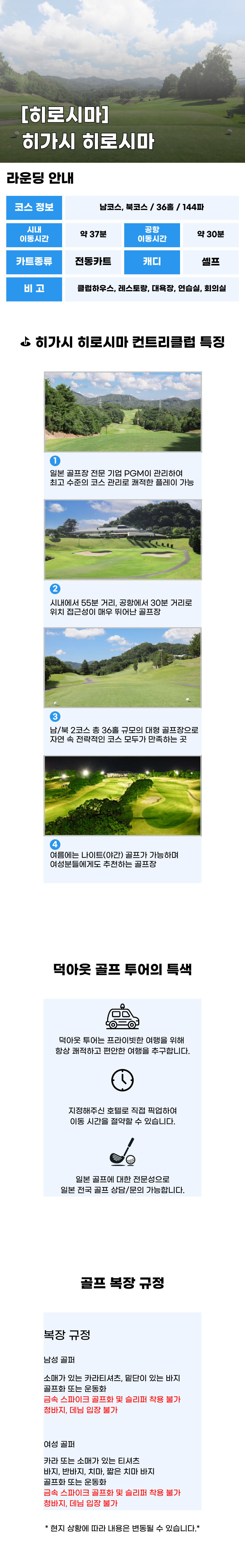[히로시마 골프 투어] 히가시 히로시마(PGM) 18홀 라운딩 (픽업 선택가능)