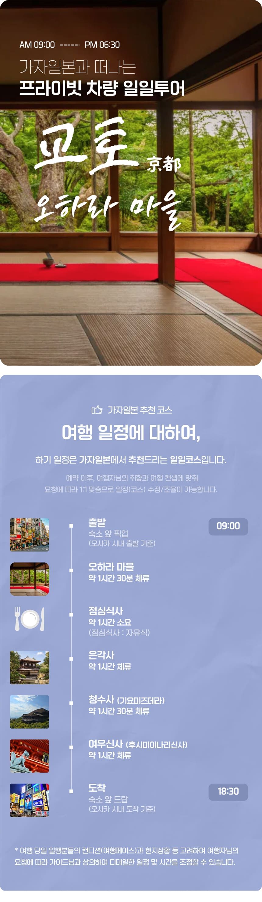 [교토 오하라마을] 프라이빗 단독 차량투어 일일 택시투어 당일 가족여행 효도여행 가자일본