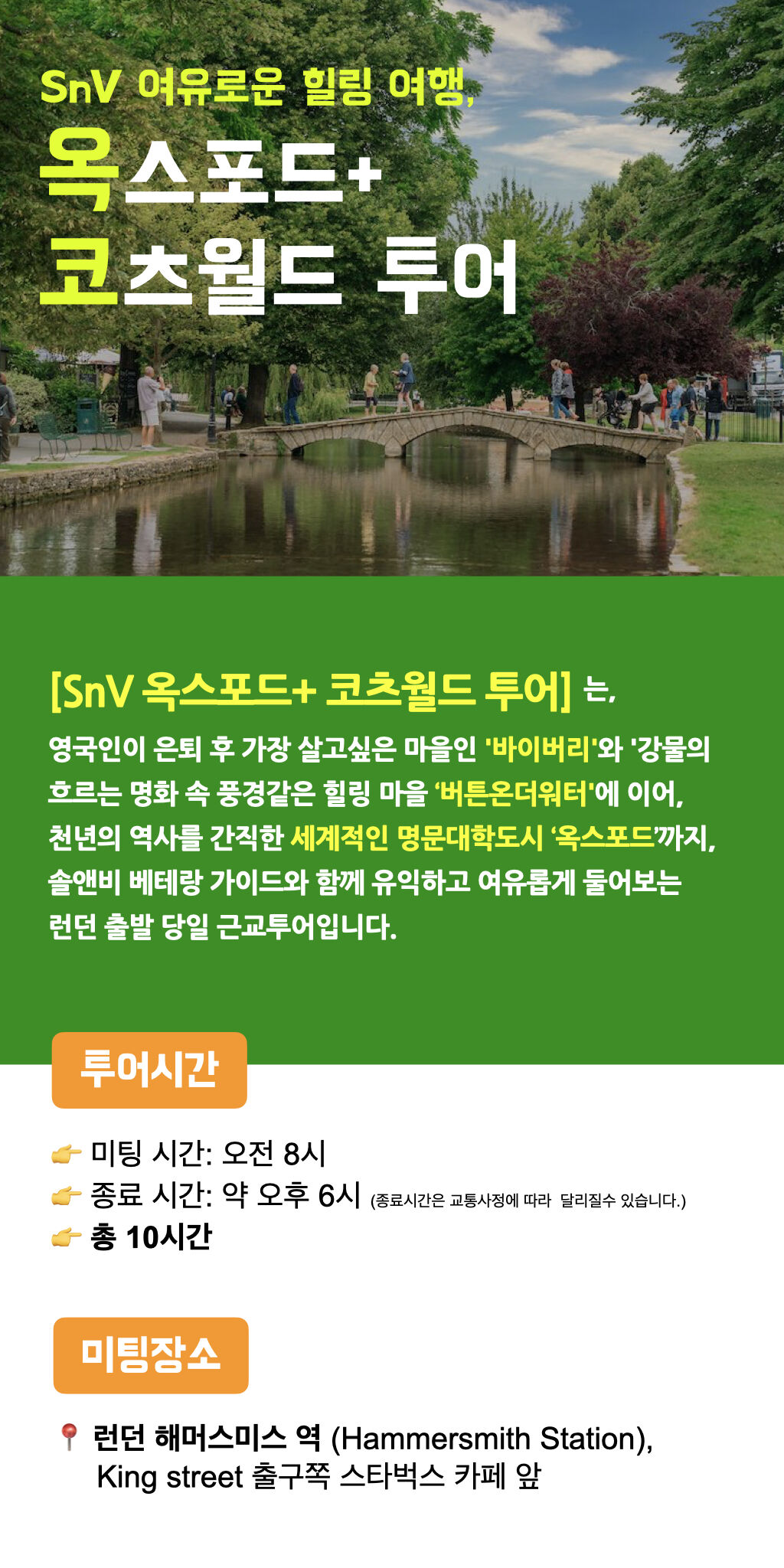 [SnV 옥코 투어] 영화같은 풍경 속 힐링여행 : 옥스포드+바이버리+버튼온더워터