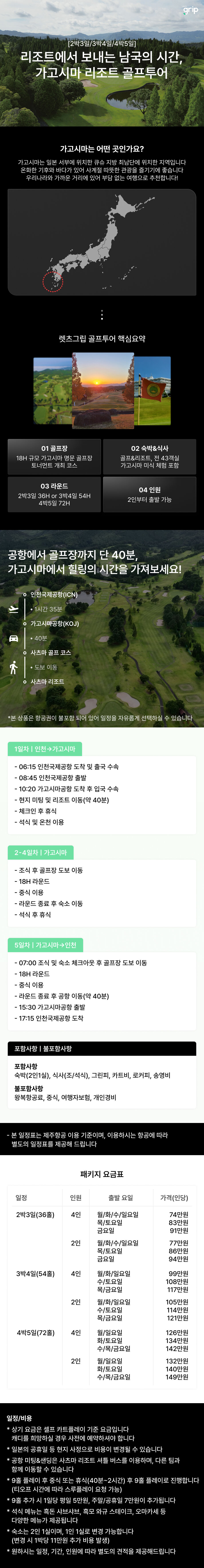 리조트에서 보내는 남국의 시간, 일본 가고시마 골프투어! [일정 선택 가능] 포함 숙박(2인1실), 식사(조/석식), 그린피, 카트비, 로커피, 송영비 불포함 왕복항공료, 중식, 여행자보험, 개인경비 마이리얼트립에서 예약하기 군포 목록 도시 목록