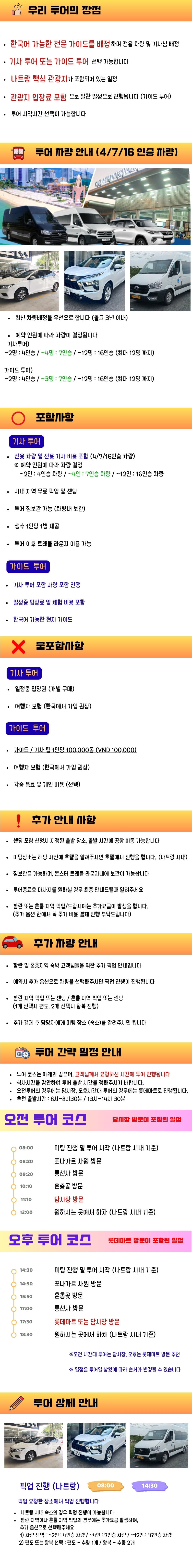 ⊙ 투어 차량은 인원에 맞춰서 4, 7, 16 인승 차량으로 진행됩니다
