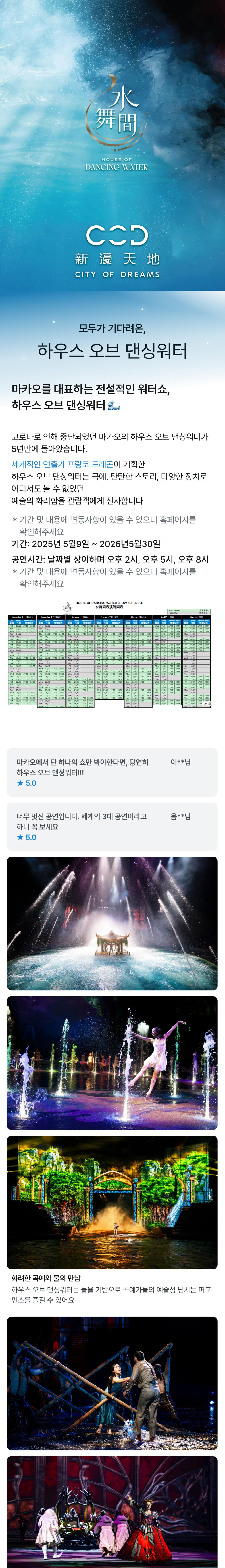 마카오 하우스 오브 댄싱 워터 쇼 평점 4.7580071174377 · 리뷰 281건 포함 입장료 음악 공연 불포함 상품 설명을 참고해주세요. 마이리얼트립에서 예약하기 마카오 목록 도시 목록