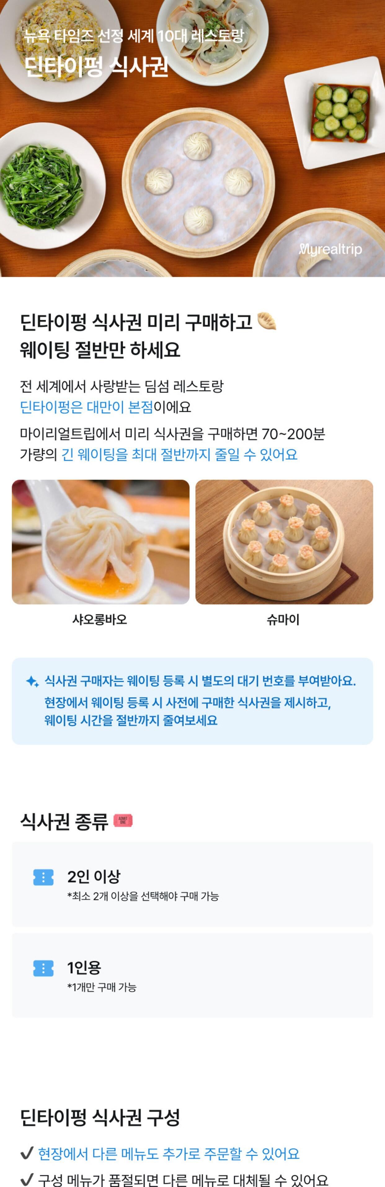 대만 딘타이펑 식사권 (샤롱바오 맛집, 전 지점 사용 가능) 평점 4.25 · 리뷰 200건 포함 • 세트에 포함된 식사 불포함 • 기타 기재되지 않은 비용 마이리얼트립에서 예약하기 가오슝 목록 도시 목록