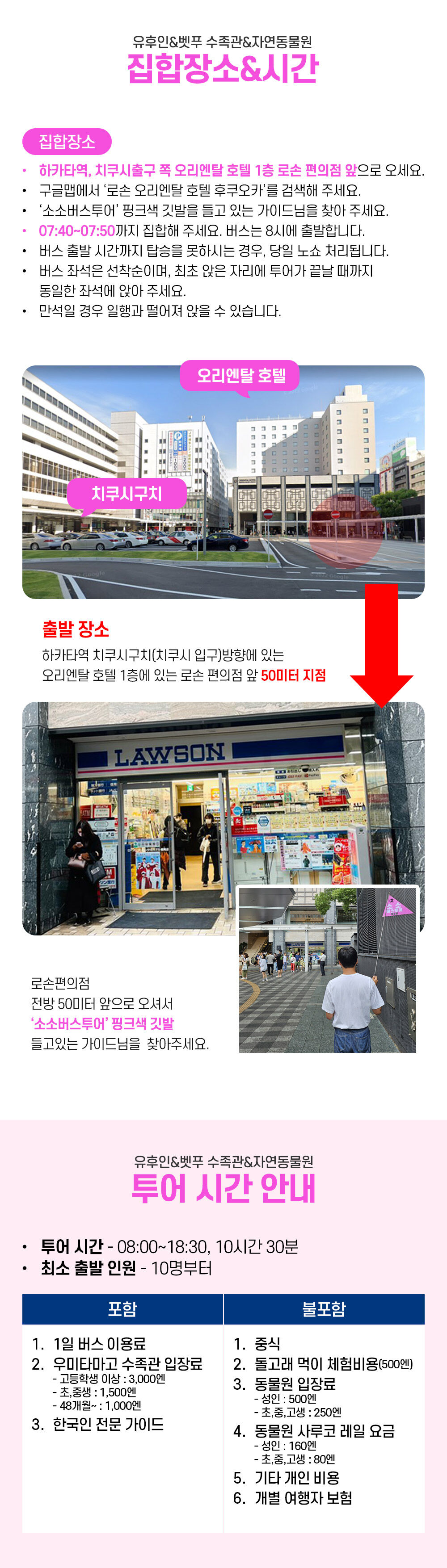 - 1일 차량 이용료 한국인 전문 가이드 또는 드라이빙가이드 우미타마고 수족관 입장료 - 고등학생 이상 : 3,000엔 - 초,중생 : 1,500엔 - 48개월 ~ 초등전 까지 : 1000엔