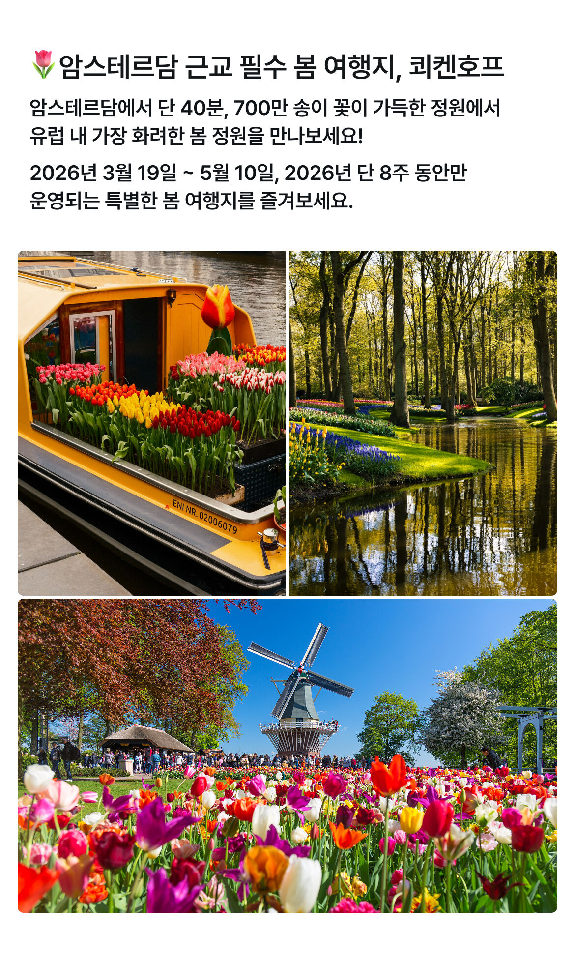 쾨켄호프 입장권 & 교통편 (암스테르담 중앙역 출발)