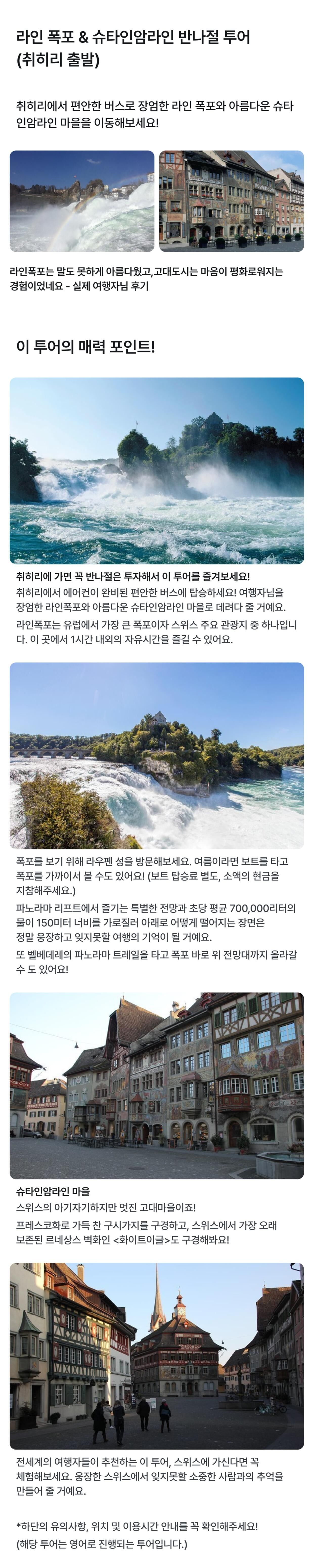 - Visit to Rhine Falls (including ticket), and access to Laufen Castle and Historama