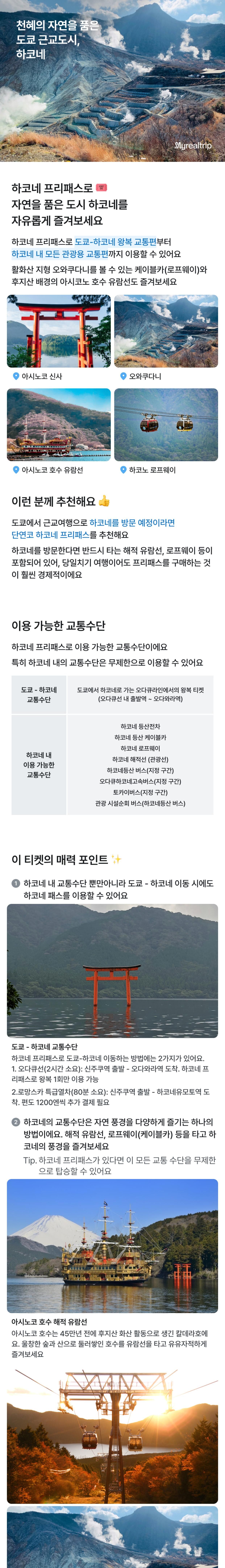 [즉시확정] 도쿄 하코네 프리패스 (2일권/3일권) 평점 4.8139534883721 · 리뷰 129건 포함 • 하코네 프리패스 (2/3일간 유효) ※이 바우처로는 전철을 이용하실 수 없습니다. 이용 시작 전에 하코네 프리패스(2/3일권) 티켓으로 교환하셔야 합니다. 불포함 상품 설명을 참고해주세요. 마이리얼트립에서 예약하기 하코네 목록 도시 목록